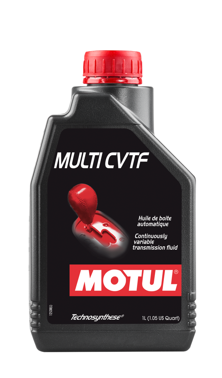 TYPE OF USE: High performance Technosynthese fluid specially engineered for Continuously Variable Transmission (CVT) gearbox type. Suitable for use in a wide range of vehicles fitted with CVT gearboxes using either chain/pulleys or belt/pulleys design. Especially suitable for vehicles from American car makers GM, FORD, CHRYSLER,, Asian car makers HONDA, HYUNDAI, KIA, MITSUBISHI, NISSAN, SUBARU, TOYOTA,… or European car makers AUDI, BMW, CITRON, MERCEDES, PEUGEOT, RENAULT, Attention, not recommended for CVT unit fitting hybrid vehicles. Before use always refer to the owner manual or handbook of the vehicle. ;PERFORMANCES: ;Some specifications include: NS-2, MB 236.20, HMMF, EZL 799, Elfmatic CVT, CVT23, CVT30, MERCON C, WSS M2C 928A, DEX-CVT. For a complete list see Technical Data Sheet ;MOTUL MULTI CVTF is a high tech multi vehicles CVT fluid suitable for a wide range of CVT-equipped passenger cars, including belt-CVT and chain-CVT design. Thanks to its exclusive and dedicated formula, MULTI CVTF: ;Allows fuel economy for cars fitted with CVT automatic gearboxes by providing optimum metal-to- metal friction. ;Provides high anti-shudder performance to avoid engine vibrations for increased comfort. ;Protects gears that are more and more numerous, compact and heavily loaded. ;Gives superior automatic transmission response through smooth shift feel and reduced shift time lag. ;Improves CVT reaction at cold temperature. ;Extends life time duration due to high shear stability at hot temperature and high oxidation resistance. ;Increases wear protection of belt, chain and pulleys. ;Anti-corrosion, anti-foam. ;RECOMMENDATIONS: Can be mixed only with similar lubricants. Oil change: according to manufacturers recommendations and adapt according to your own use. Not recommended for CVT unit fitting hybrid vehicles. Before use always refer to the owner manual or handbook of the vehicle.